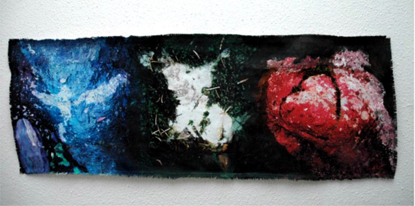 "the pulse of things": acryl - fotos - holz, rinde etc.