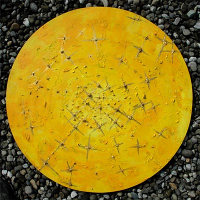 diese bilder habe ich zu meiner cd „hearing colours“ gemalt, zu jeder farbe eines. neben der eigentlichen farbe habe ich in einigen bildern elemente der natur verarbeitet, was ihnen eine dreidimensionalität verleiht. sie sind bis auf „breathe and be breathed“ (leinwand) alle auf spanplatten.